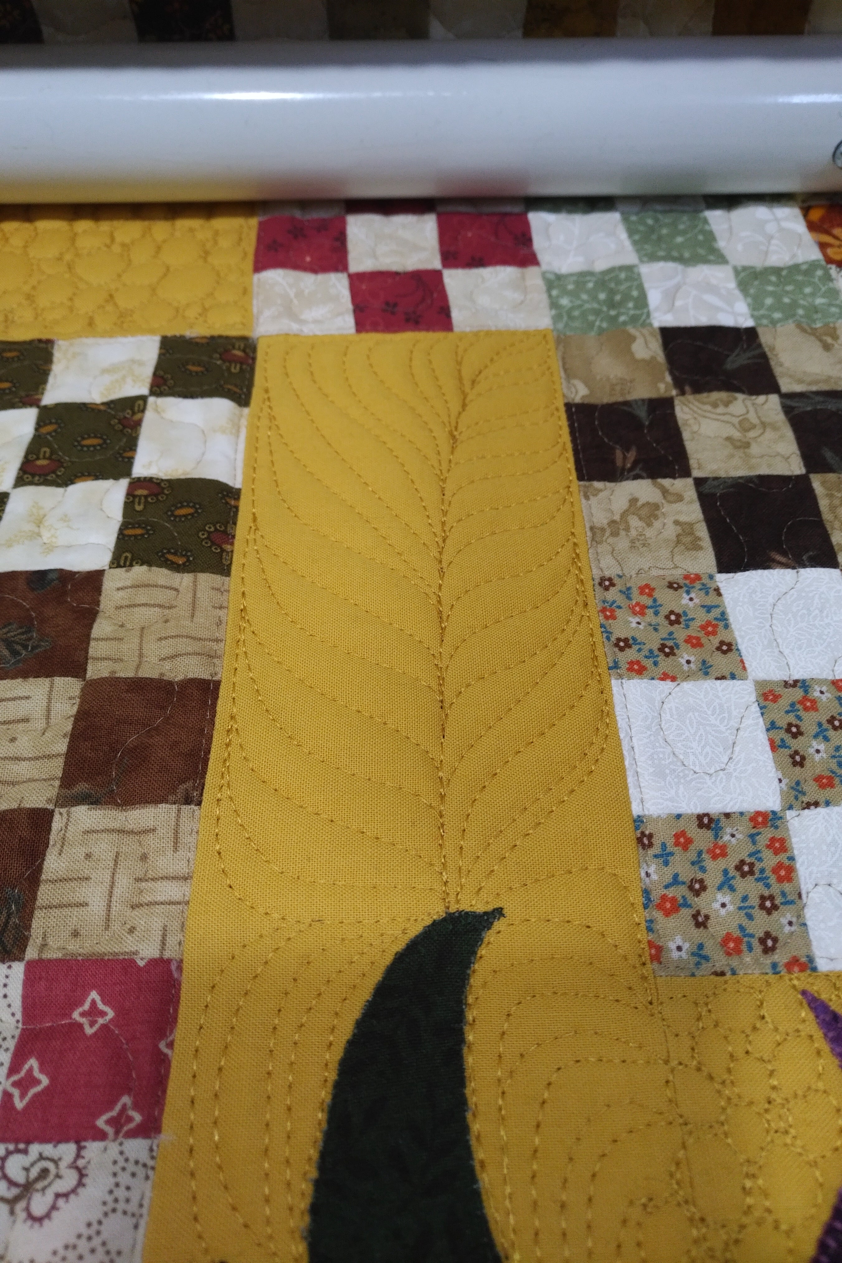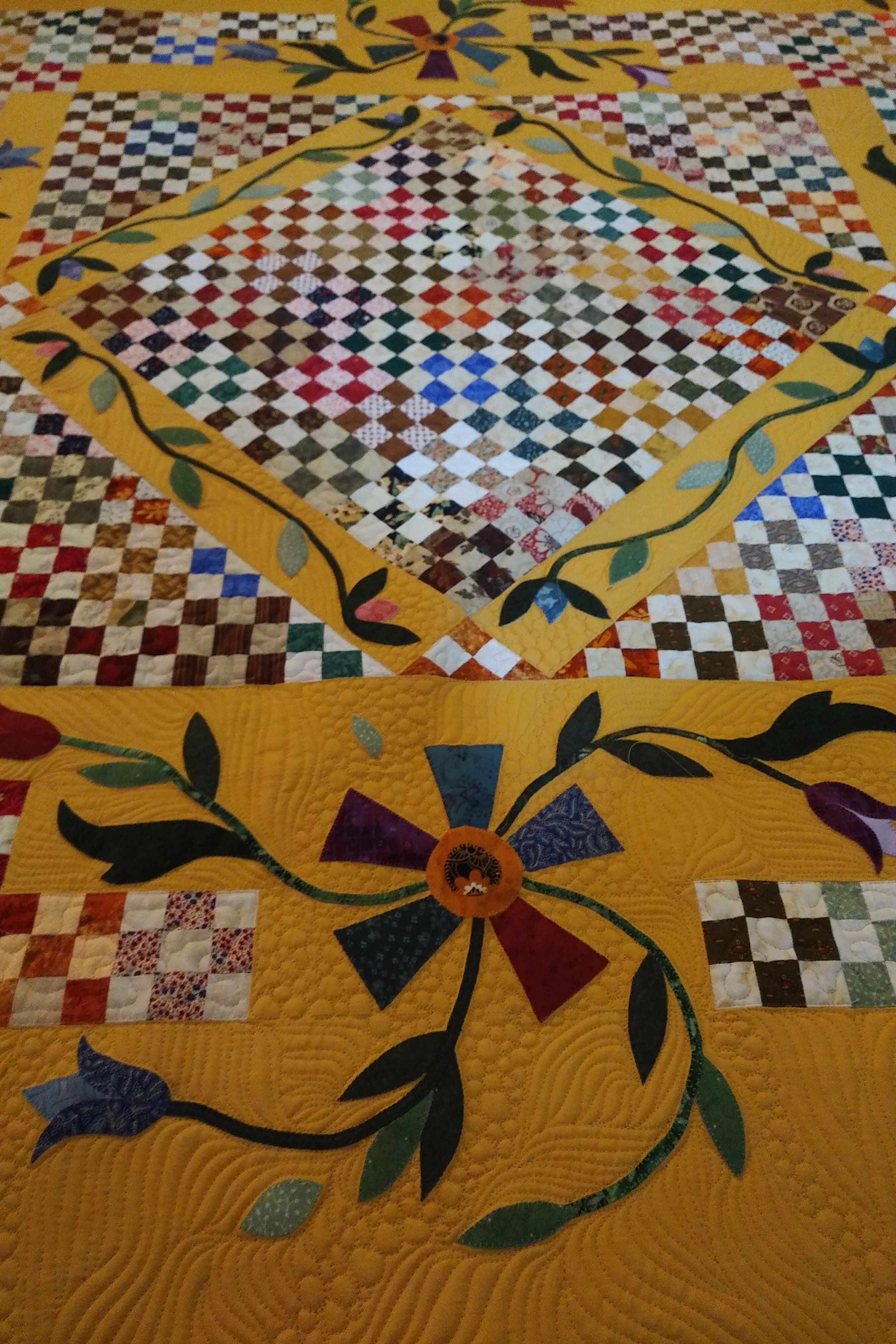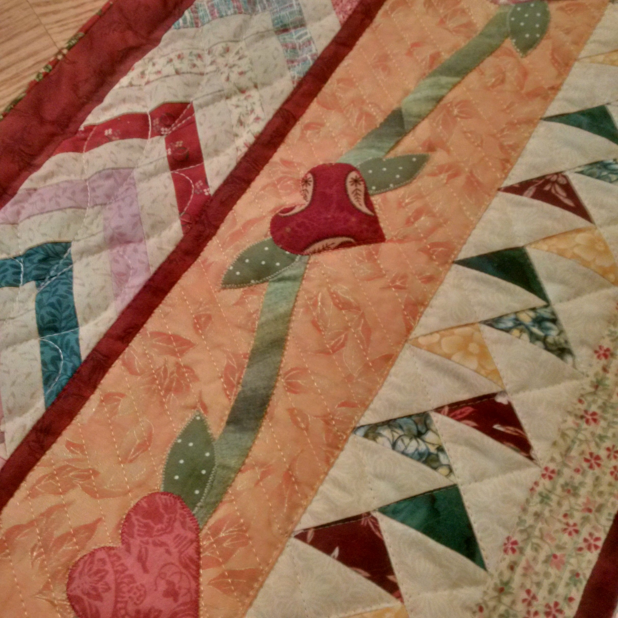 Custom Quilting around Applique