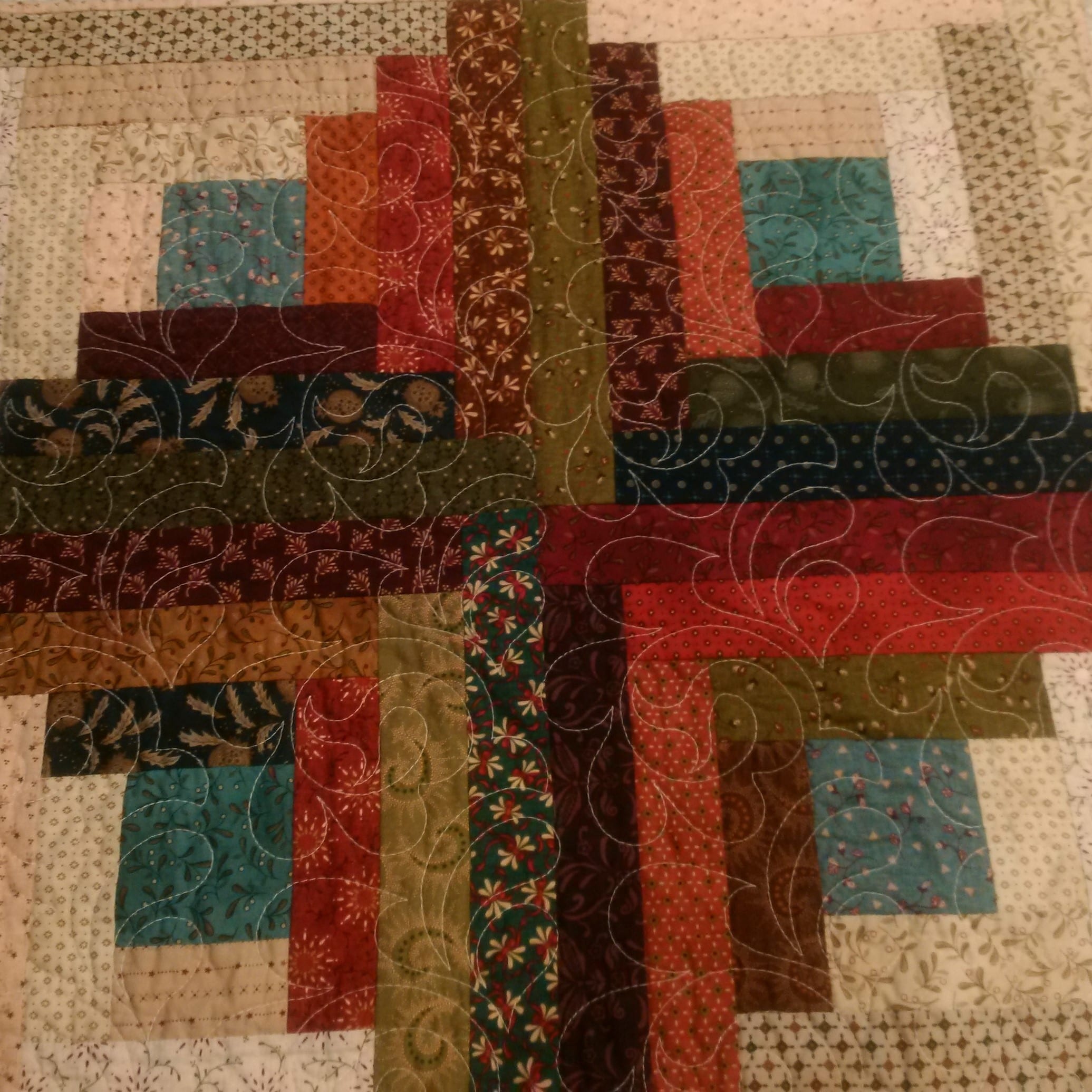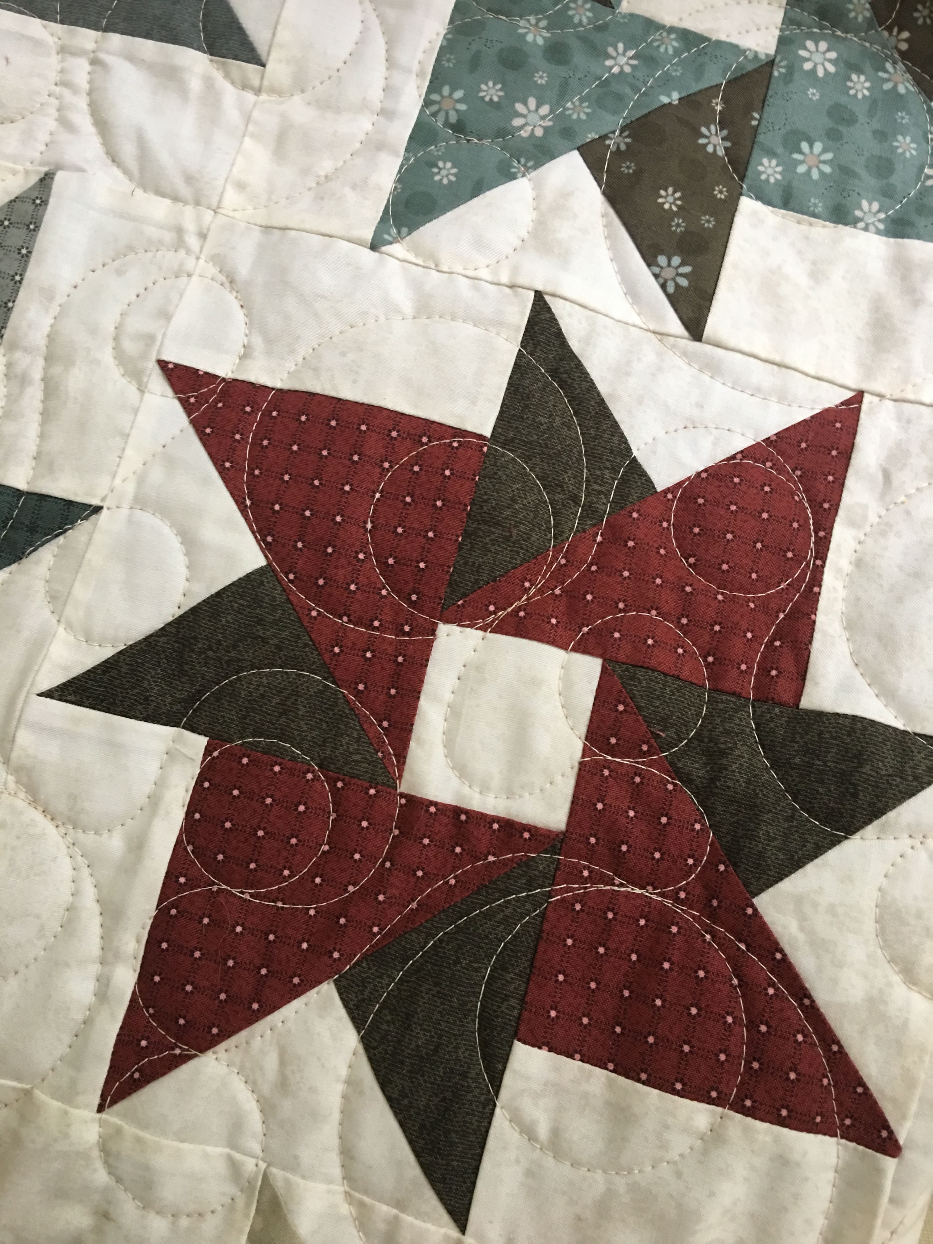 A mixture of ruler work and free-motion quilting